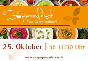 Am Samstag, den 26. Oktober, bittet der Lions Club Speyer Palatina ab 11:30 Uhr zur 5. Auflage seines Suppenfestes am Geschirrplätzel.
